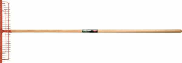 Informations techniques : Râteau de jardin en frêne ·Parfait pour ratisser l'herbe coupée et des feuilles ·Dents d'acier ressort, laquées en rouge