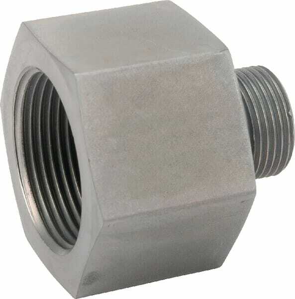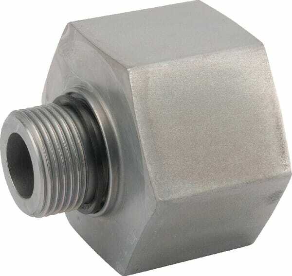 Forme : Droit Type de raccord n°1 : Filetage Type de raccord n°1 - mâle/femelle : Femelle Longueur raccord n°1 : 26,5 mm Diamètre de filetage du raccord n°1 : 1-1/4 Inch Type de filetage du raccord n°1 : BSP Raccord n°1, taille hexagonale : 31,9 mm Raccord n°1, taille de clé : 55.0 mm Type de raccord n°2 : Filetage Type de raccord n°2 - mâle/femelle : Mâle Diamètre de filetage raccord n°2 : 3/4 Inch Longueur de filetage raccord n°2 : 26,5 mm Type de filetage raccord n°2 : BSP Taille de clé de raccordement n°2 : 55.0 mm Longueur totale : 56,5 mm Matériau d'étanchéité : Caoutchouc nitrile [NBR] Matériau : Acier Couple de serrage max. : 200 N·m Pression de service maximale : 400 bar Norme DIN : 228 Traitement de surface : Zinc, Nickel-plated Raccordement : BSP extérieur / BSP intérieur dB(A) Détails du produit : - Joint Viton disponible sur demande