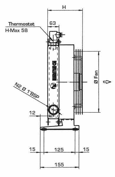 Se compose de : - Radiateur en aluminium - Console - Ventilateur/moteur électrique, tension selon modèle - Interrupteur de température 40 à 48 ºC - Connecteur de raccordement de l'interrupteur de température/du moteur à courant continu