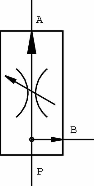 Débit max. : 70 l/min Débit max. régulé : 50 l/min Montage possible : Convient pour le montage entre les tuyaux Pression de service maximale : 315 bar Diamètre de filetage du raccord : M22 Pas de vis du raccord : 1.50 mm Diamètre de filetage raccord n°2 : M22 Pas de vis raccord n°2 : 1.50 mm Type de réglage : Volant Réglage : Volant Application : Réglage du régime de moteurs hydrauliques en cas d'un débit volume haut et d'une pression haute Débit : De P vers A. Indépendamment de la charge, l'huile arrivant au raccord P passe d'abord par A (DP = 3,5 – 6 bars). L'huile résiduaire est déchargée par le bypass vers un système séparé qui peut être mis sous pression. Montage : Convient pour le montage entre tubes Type : Réglage de précision , réglage électrique livrable sur demande Informations techniques : Ces régulateurs de débit sont pourvus de série d'une bague de réglage à contre-écrou. Le raccord B peut être mis sous pression.
