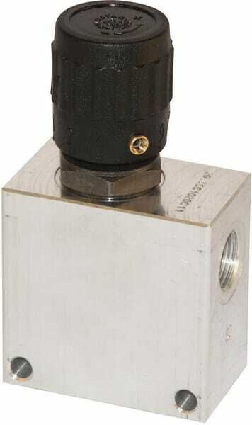 Informations techniques : Indépendamment de la charge, le compensateur de pression (DP = 12 bars) assure un passage de débit constant. D'usine ces valves sont livrées avec un bouton régulateur avec indication graduelle.