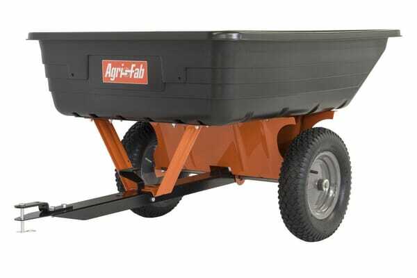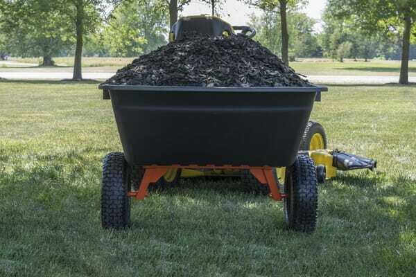 Remorque pratique pour le transport de terre, de gravier, de sable, de plantes ou de pierres d'un poids maximal de 450 kg Attelage de remorque universel convenant à la plupart des tondeuses autoportées. À utiliser pour les travaux extérieurs dans le jardin.