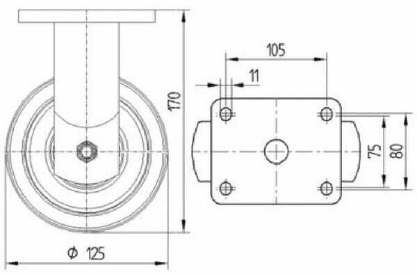 Diamètre de roue : 125 mm