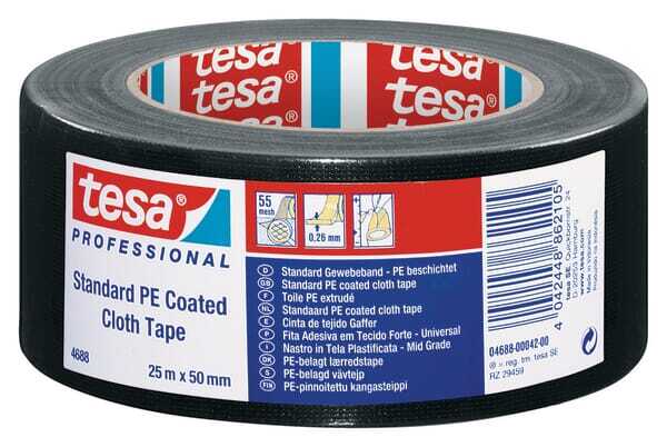 Ruban, tissu, enduit de PE standard, noir, 25m x 50mm, TesaBAND®