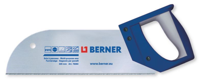 Scie à panneaux longueur 325 mm, poignée bimatière à lame à denture universelle fine trempée par induction ne nécessitant pas de réaffuttage pour des coupes de bois de construction, mélaminés et matériaux plastiques. (par 1)