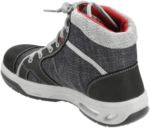 Détails du produit : - Matière textile hydrophobe aspect jeans / Cuir nubuck hydrophobe - Doublure en tissu Bioactif - Languette rembourrée - Semelle intérieure pleine longueur ESD PRO grise - Semelle intermédiaire non métallique à l'épreuve des perforations - Semelle PU/PU WELLMAXX L10 - Embout en acier - EN ISO 20345 S3 SRC, forme B - Coeur de semelle en Infinergy® de BASF