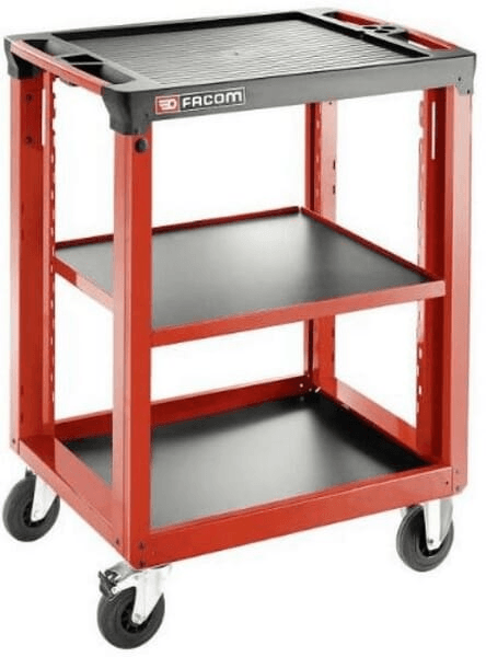 Facom Servante d’atelier avec trois étagères et un grand plan de travail (560x460mm) en polypropylène, antichoc et résistant aux hydrocarbures.