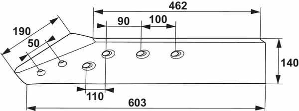 Longueur supérieure : 462 mm