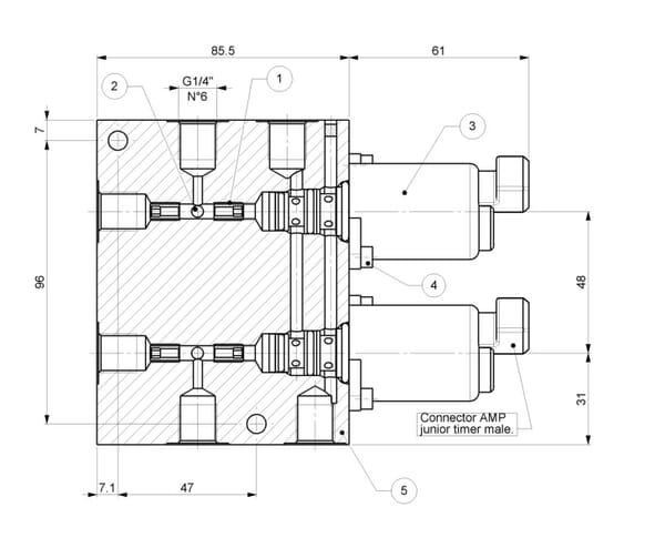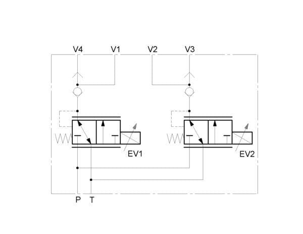 Débit max. : 6 l/min Pression de service maximale : 90 bar Plage de pression réglable : 0-35 bar Se compose de : - Raccords V1 et V2 pour le raccordement au distributeur - Raccords V3 et V4 pour le raccordement à la commande existante - Raccord P - Raccord T - Sélecteurs de circuit intégrés - Réducteurs de pression proportionnels 0 à 35 bar Type de raccord : Filetage Type de filetage du raccord : BSP Diamètre de filetage du raccord : 1/4 Inch Matériau du boîtier : Aluminium Extra info : - Raccords V1 et V2 pour le raccordement au distributeur - Raccords V3 et V4 pour le raccordement à la commande existante - Raccord P - Raccord T - Sélecteurs de circuit intégrés - Réducteurs de pression proportionnels 0 à 35&nbsp,bar Points forts : - Facile à mettre en œuvre dans les systèmes existants Détails du produit : - Détendeur 2 voies - Réglable de 0 à 35 bars - Pression au raccord P minimum 40 , maximum 90 bars - Pression maximale sur le raccord de retour 20 bar - Débit maximal PT 6 L/min