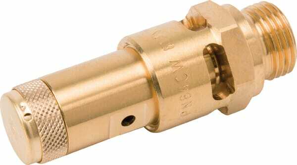Les soupapes de sécurité pour installations pneumatiques sont conçues pour protéger le système des conditions de surpression. Ces vannes libèrent automatiquement l'air lorsque la pression dans le système dépasse une limite prédéterminée, évitant ainsi tout dommage potentiel à l'équipement, réduisant le risque d'accident et garantissant le fonctionnement sûr du système pneumatique. Diamètre de filetage du raccord : 1/2 Inch Longueur de filetage du raccord : 12 mm Type de filetage du raccord : BSPP Type de raccord : Filetage Matériau : Laiton Pression de service maximale : 2 bar Détails du produit : - Soupape de sécurité à réglage fixe - Approuvé CE : EN 10204 2.2 (des soupapes de sécurité avec une certification CE plus élevée peuvent être spécialement commandées) - Sur demande, toute pression souhaitée entre 0,3 et 47 bar peut être commandée - Pour air comprimé ou gaz neutres - Boîtier : Laiton - Partie intérieure : Laiton - Ressort de compression : Acier inoxydable - Joints : En dessous de 2,4 bar : Silicone - Joints : A partir de 2,4 bar : Fluorubber - Plage de température : -10°C à +180°C Comprend : - Soupape de sécurité ajustée à réglage fixe - Certification CE : EN 10204 2.2 (des soupapes de sécurité avec une certification CE plus élevée peuvent être spécialement commandées)
