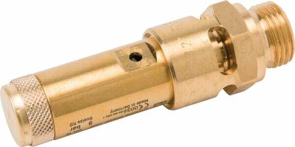 Détails du produit : - Soupape de sécurité à réglage fixe - Approuvé CE : EN 10204 2.2 (des soupapes de sécurité avec une certification CE plus élevée peuvent être spécialement commandées) - Sur demande, toute pression souhaitée entre 0,3 et 47 bar peut être commandée - Pour air comprimé ou gaz neutres - Boîtier : Laiton - Partie intérieure : Laiton - Ressort de compression : Acier inoxydable - Joints : En dessous de 2,4 bar : Silicone - Joints : A partir de 2,4 bar : Fluorubber - Plage de température : -10°C à +180°C