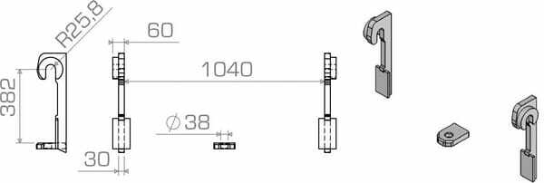 Distance des points de fixation : 382 mm