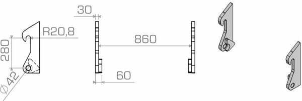Distance des points de fixation : 280 mm