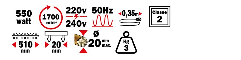 Moteur 230 V ~ 50 Hz. Puissance 550 W. 1 700 tr/mn.