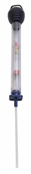 Le pH de l’acide contenu dans la batterie est mesurée grâce à l’échelle d’acidité. La pH détermine le statut de charge de la batterie. Cette conception solide est constituée d’un hydromètre centré. Cela permet de garantir l’absence d’oscillation de l’hydromètre et de contact latéral avec le tube extérieur, mais aussi de vous assurer que la valeur puisse être lue rapidement et correctement sur la graduation numérotée et colorée.