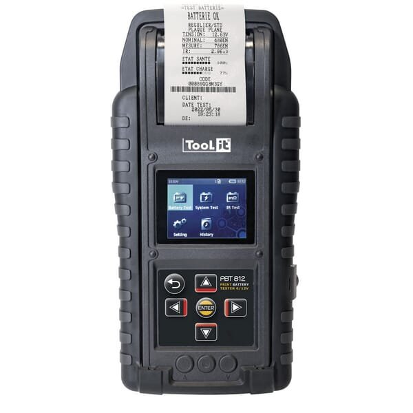 Points forts : - Adapté à la plupart des types de batteries au plomb - Affichage immédiat et impression des résultats des tests - Écran rétroéclairé, large et clair - Compensation de température extérieure automatique