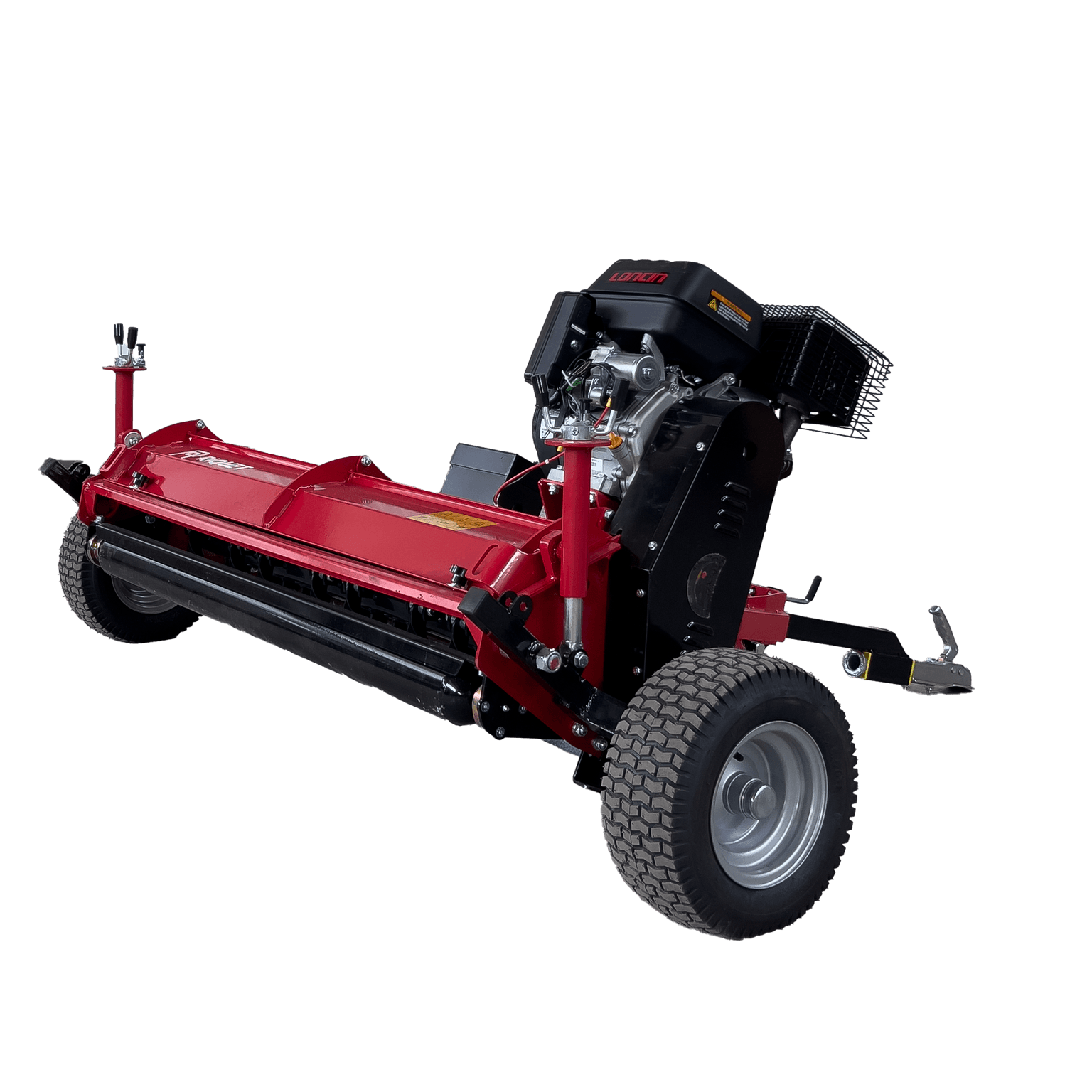 Tondo Broyeur pour quad Ricquet ATVR150L Moteur Loncin 15cv à démarrage électrique Embrayage centrifuge du rotor Outils de coupes à 32 marteaux Largeur de coupe 1,5m Dimensions hors tout 211cmx172cmx90cm Poids de la machine 247kg