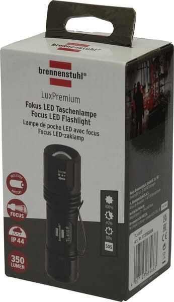 Brennenstuhl torche LED LuxPremium TL 410 F offre une lumière extrêmement brillante grâce à la Osram LED et est polyvalent grâce à sa taille. La fonction soft-touch permet une commutation rapide entre les niveaux de commutation 100% - 40% - 10% - SOS. La lampe d'inspection à LED pratique permet un éclairage idéal grâce à sa mise au point réglable en continu, de la lumière large de près à la lumière focalisée de loin.