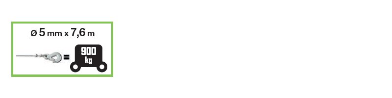 Câble en acier : Ø 5 mm x 7,6 m.