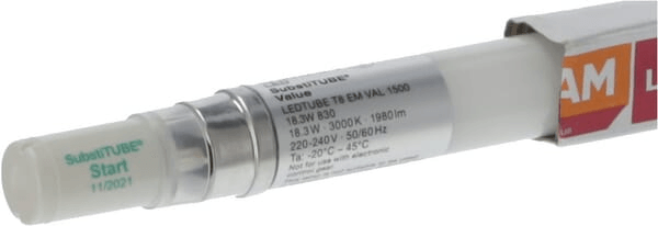 Détails du produit : - Alternative LED aux lampes fluorescentes T8 traditionnelles dans les supports de ballast conventionnel - Lumière uniforme - Marquage RoHS sans mercure - Efficacité jusqu'à 105 lm/W - Tube en verre - Applications : couloirs, escaliers, parkings, chambres froides et magasins, applications domestiques, industrie, supermarchés, entrepôts - Éclairage général à des températures ambiantes de -20 à + 45 °C - Convient pour une utilisation avec un ballast à faible perte et conventionnel