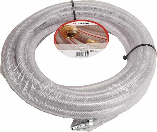 Tuyau en PVC 10 mm avec un insert tressé Moyen : Air Diamètre interne du flexible : 8 mm Diamètre extérieure de flexible : 14 mm Type : Tuyau pneumatique Épaisseur de paroi : 3 mm Longueur : 10 m Matière intérieure : PVC Matière extérieure : PVC Pression de service maximale : 15 bar Pression d’éclatement : 45 bar Température de service maximale : 60 °C Température de service min. : -5 °C Points forts : - Très résistants - Résistant à l'ozone - Résistant à l'air huileux Détails du produit : - Pour la nourriture, l'eau et l'air comprimé - Pour la nourriture, l'eau et l'air comprimé Comprend : - Tuyau de 10 mètres ​ - 1 raccord rapide femelle (série 14/22) - 1 raccord rapide mâle (série 14/22) - 2 colliers de serrage - Emballage du magasin avec étiquette