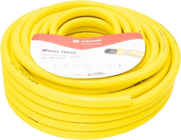 Détails du produit : Tuyau d'arrosage à usage moyen conçu pour une utilisation semi-professionnelle dans les applications d'irrigation et de nettoyage dans les secteurs de l'agriculture, de la construction et de l'industrie. Le renfort tricoté assure une grande résistance aux plis, aux nœuds et une bonne résistance à la pression. Fabriqué en PVC sans phtalate, cadmium, baryum et plomb, le tuyau offre une résistance exceptionnelle aux UV et à l'usure, conservant sa flexibilité même à basse température. Construction : Structure à 4 couches : renfort tricoté, couche intérieure – PVC noir (résistant aux algues) avec jusqu'à 25 % de matériaux recyclés, couche intermédiaire – PVC jaune, couche extérieure – PVC jaune translucide. Températures de fonctionnement : −10/+60°С