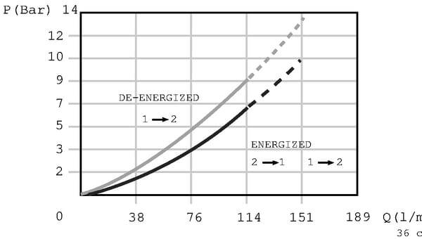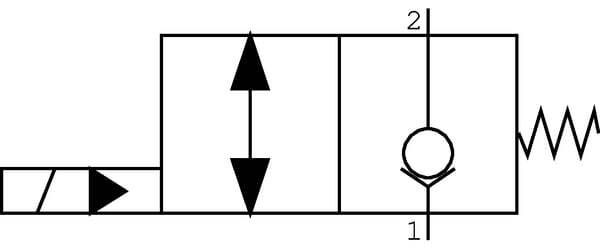 Il s'agit d'une vanne solénoïde normalement fermée et pré-actionnée. A l'état non alimenté, le flux de 2 à 1 est fermé, tandis que le flux de 1 à 2 est libre. Lorsqu'il est utilisé, l'écoulement est libre dans les deux sens.