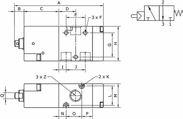 Vanne 3/2 à poussoir 1/8"