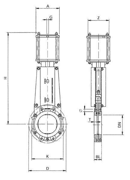 Vanne guillotine pneum. DN 350