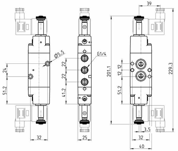 Type de soupape : 5/2
