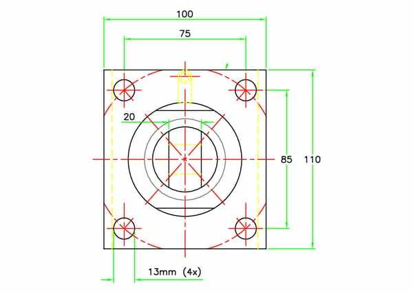 Entraxe des trous de montage - raccord du vérin : 85 mm