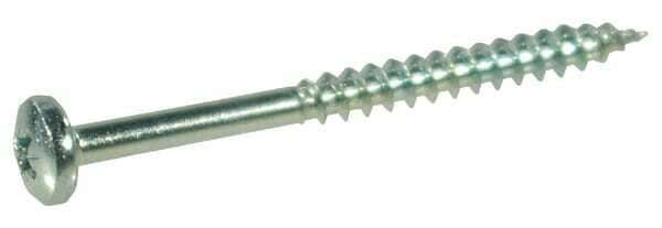 Vis pour aggloméré à tête cylindrique large, pour utilisation dans la plupart des essences de bois, tête fendue Pozidriv.