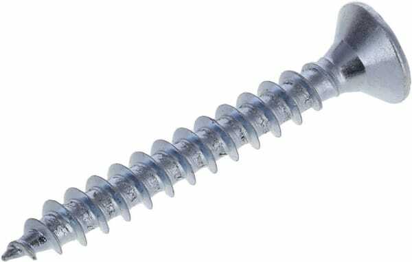 Vis pour aggloméré à tête fraisée, pour utilisation dans la plupart des essences de bois, tête fendue Pozidriv.