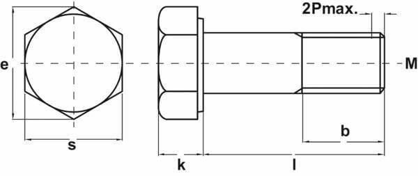 Boulon de construction, partiellement fileté, à tête adaptée aux clés de plus grande taille.