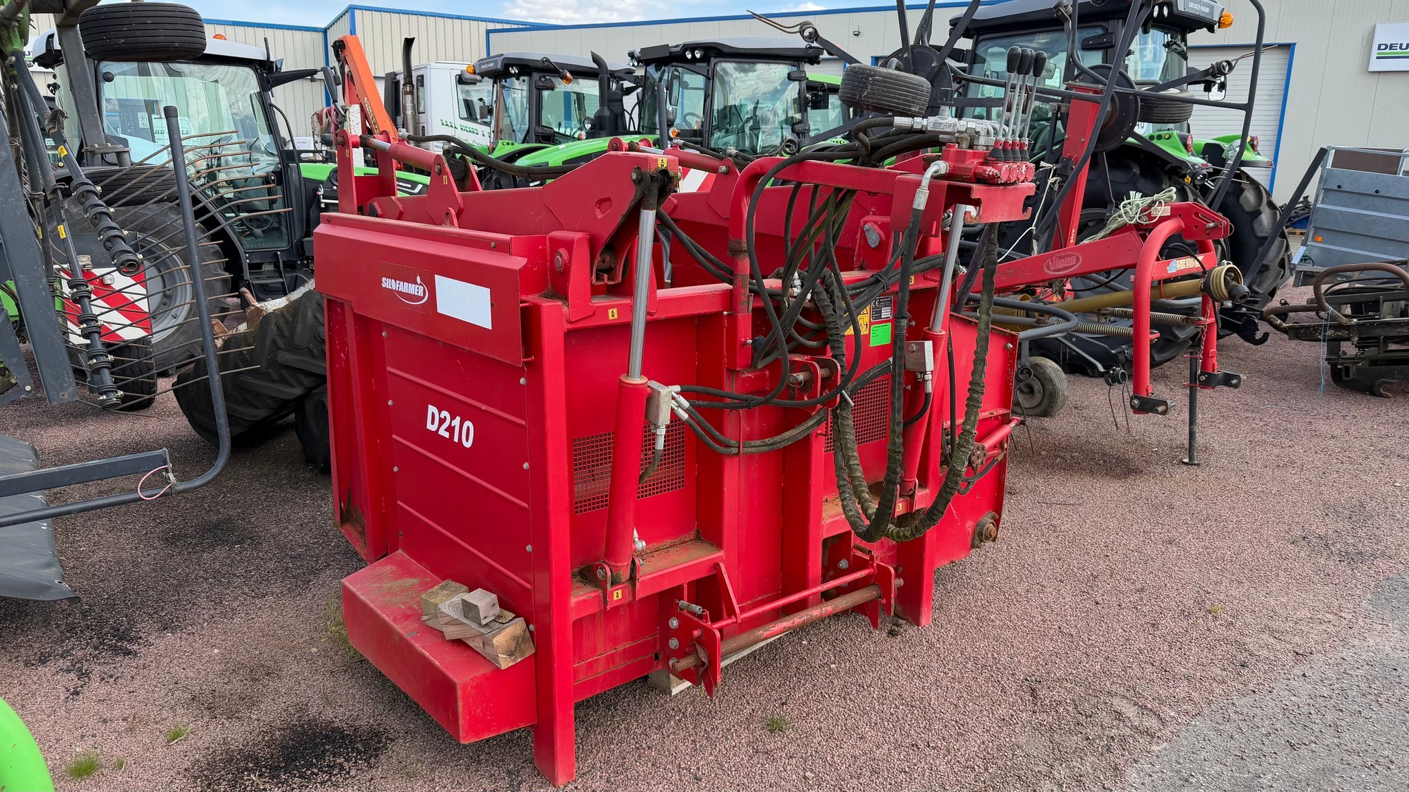 | Détails | Désileuse Silofarmer D210, capacité 2.1m3, commande manuelle, distribution à gauche, griffe hydraulique. |